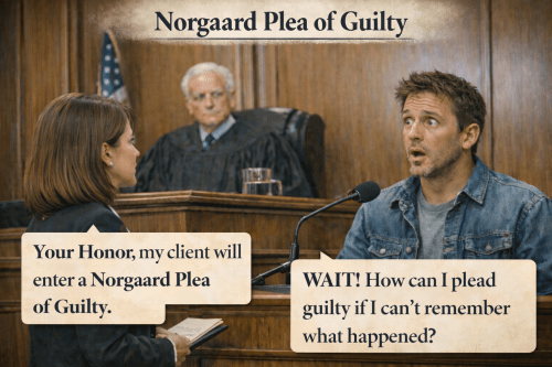 A Norgaard plea applies when a defendant wants to plead guilty (often for a plea bargain) but can’t recall the events due to intoxication or amnesia—and unlike an Alford plea, the defendant is not claiming innocence.