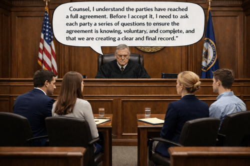 This Training Update focuses on what experienced judges and practitioners recognize as a judicial best practice: building a clear, thorough record that confirms the agreement is knowing, voluntary, fair, and based on full disclosure. While not mandated in all cases, this step is often the most effective way to protect the judgment’s finality and enforceability.